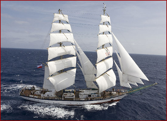fregatę (trzy lub więcej masztów, ożaglowanie rejowe),