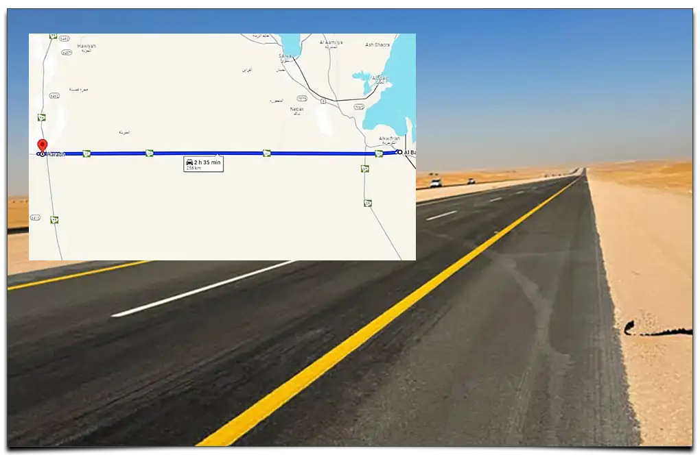 Ten rekordowy odcinek autostrady nr 10 ciągnie się przez 256 kilometrów na terenie pustyni Ar-Rub al-Chali.