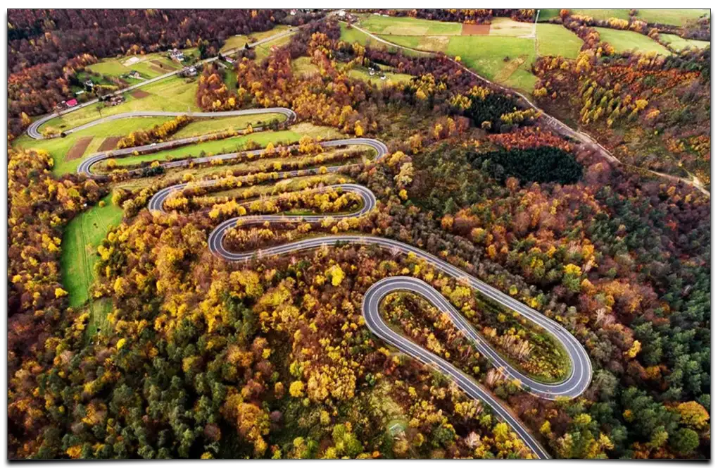 Co ciekawe - w przeszłości, na drodze gruntowej, istniały tutaj aż 42 zakręty. Po przebudowie zostało ich 18, co nadal czyni ją unikatowym odcinkiem w Polsce 🥴