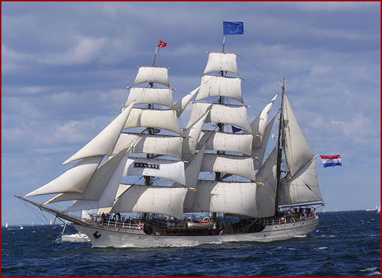 bark (trzy lub więcej masztów, ożaglowanie gaflowe na bezanmaszcie, rejowe na pozostałych),